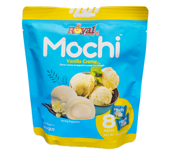 Mochi taiwanesi dal gusto delicato di vanilla crème, con morbido impasto di riso glutinoso che racchiude un ripieno cremoso e profumato. Prodotto da Royal Family, è uno snack raffinato e irresistibile, ideale come dessert asiatico, dolce premium o regalo per gli amanti dei mochi. Confezione da 8 pezzi.
